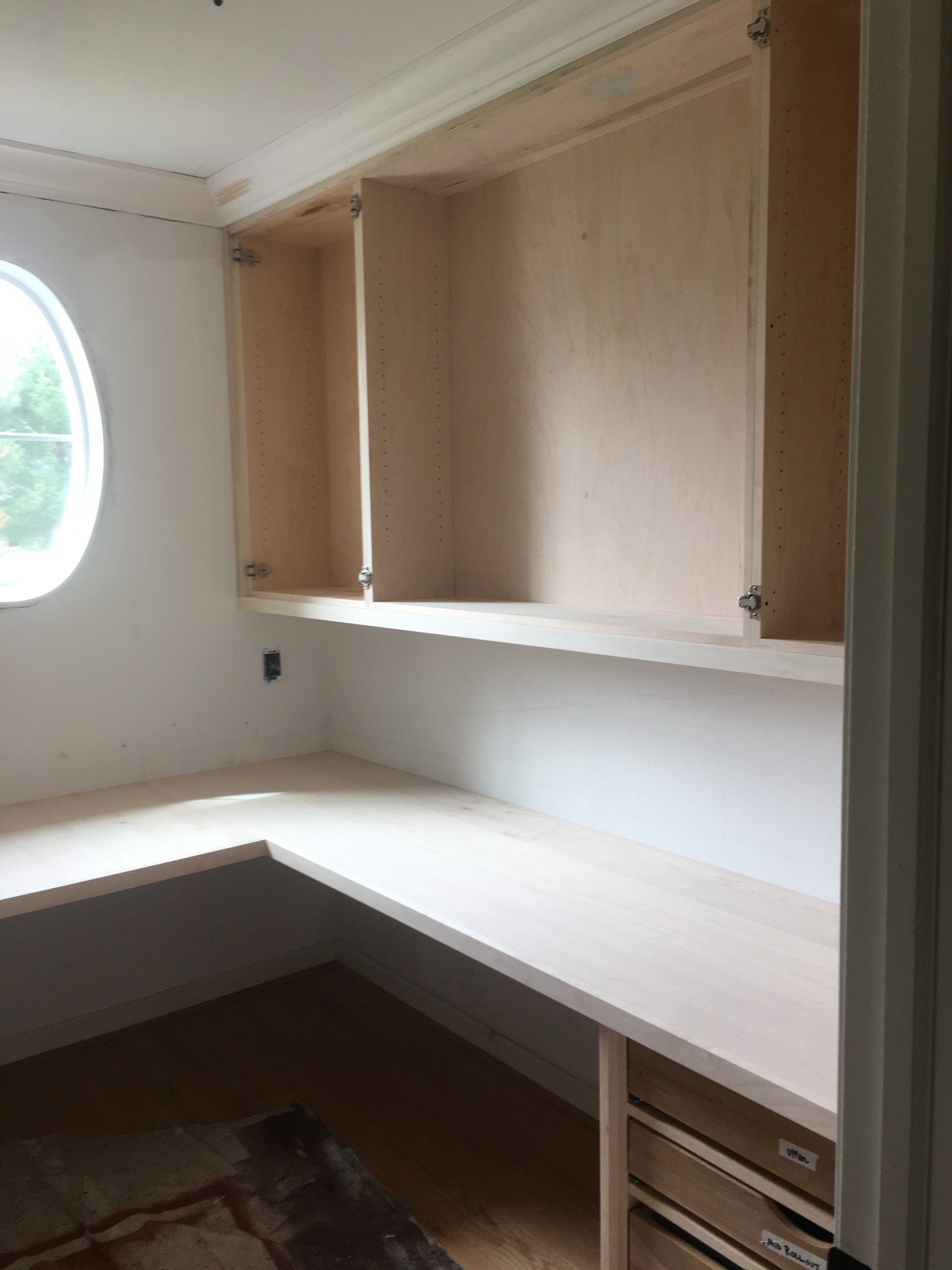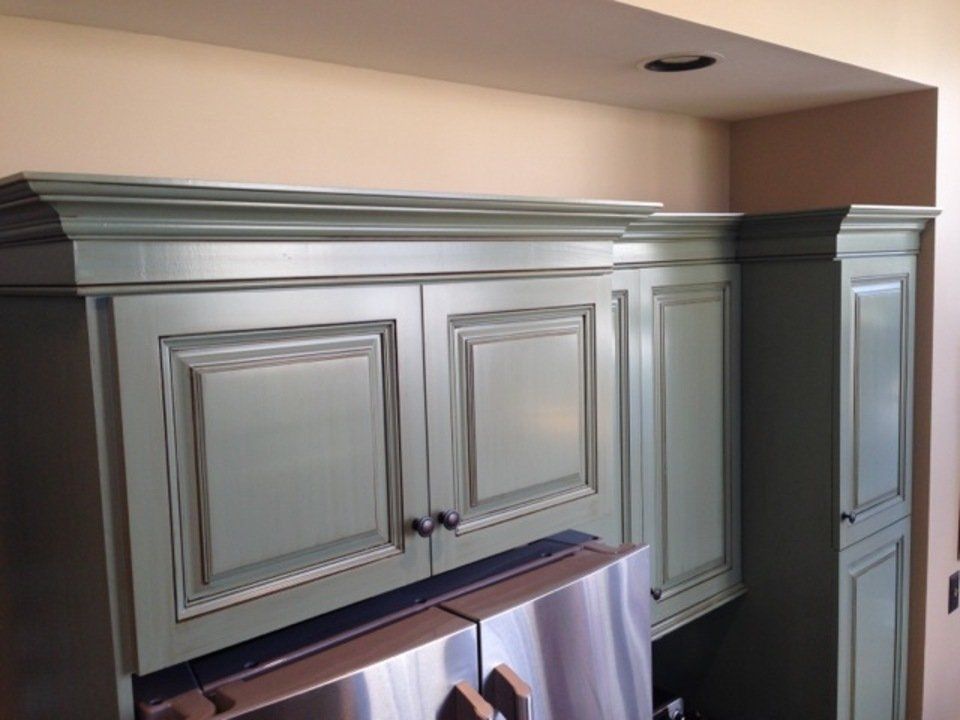 - Painted glazed or distressed finishes for cabinetry and millwork